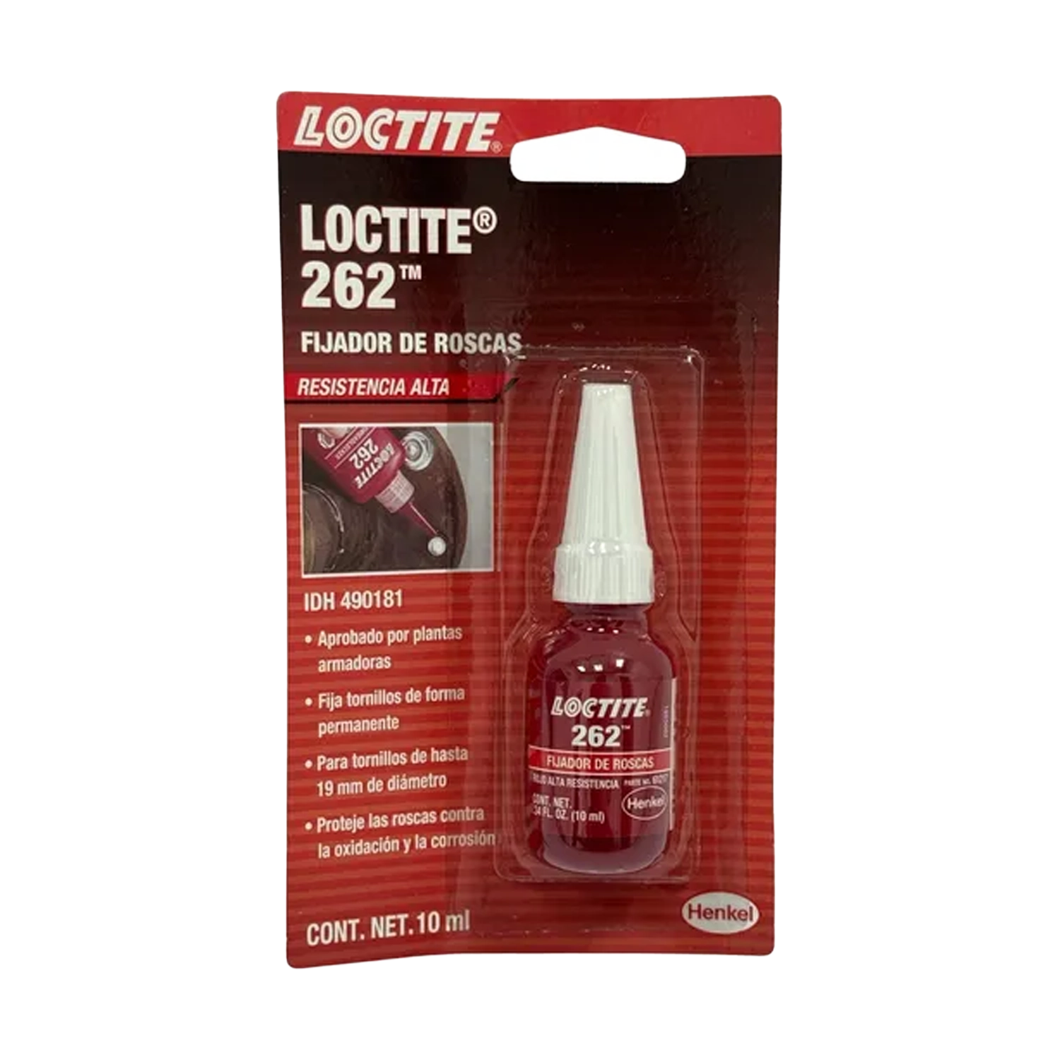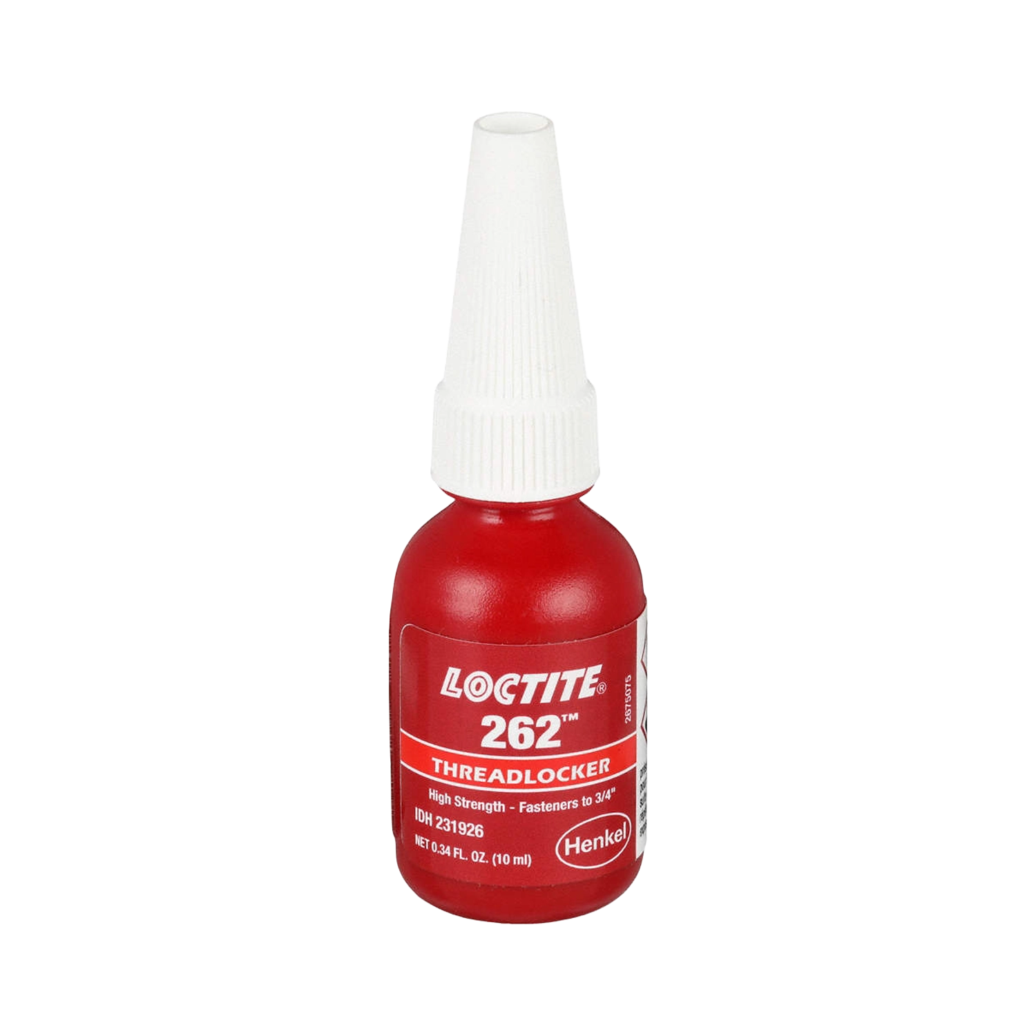 Loctite 262 threadlocker is a 10 ml red high-strength adhesive for permanent locking of threaded metal fasteners.