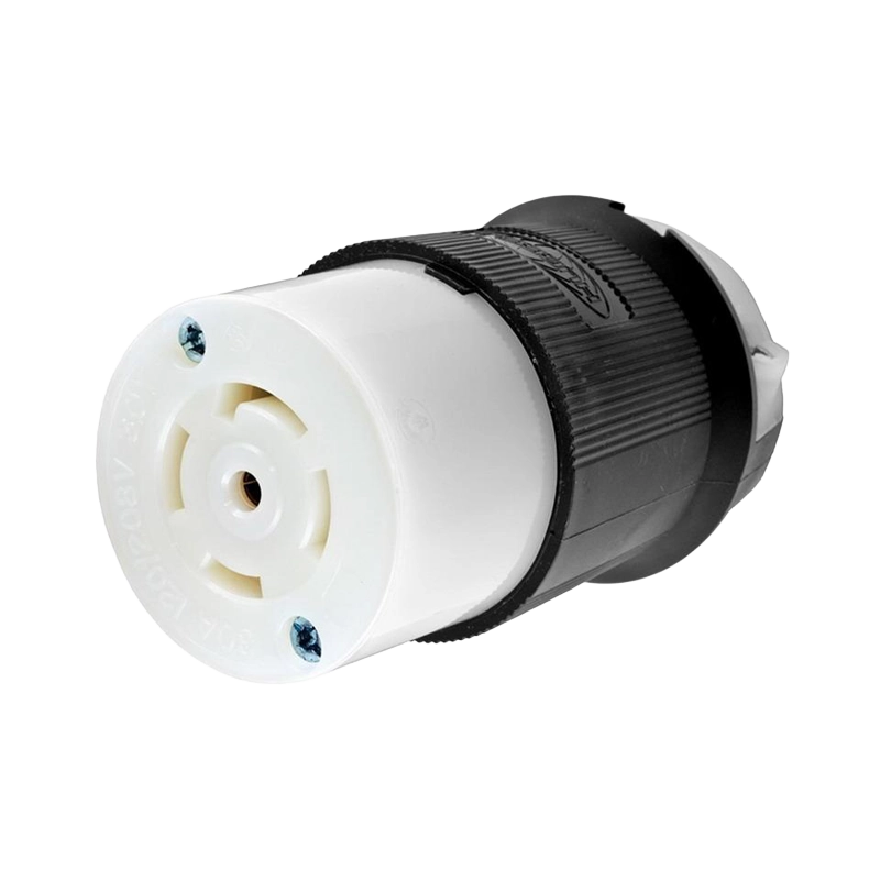 The nema l21-30 locking connector is a twist-lock connector rated for 30 amps and 120/208V, featuring 4 poles and 5 wires. Commonly used in three-phase WYE configurations, this connector ensures a safe and tight electrical connection that resists accidental disconnection.