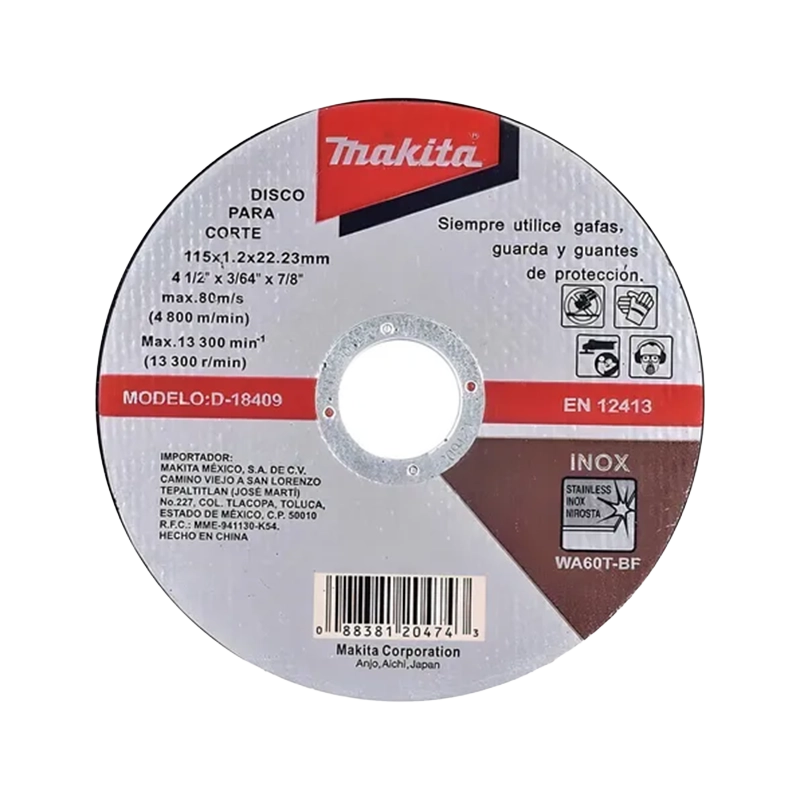 The Makita D-18409 Stainless Steel Cutting Disc is designed for professionals who demand reliability, precision, and safety when working with stainless steel. With a diameter of 4-1/2 inches, a thickness of 3/64 inches, and a 7/8-inch arbor hole, this disc is engineered to deliver clean, burr-free cuts with minimal effort and maximum control.