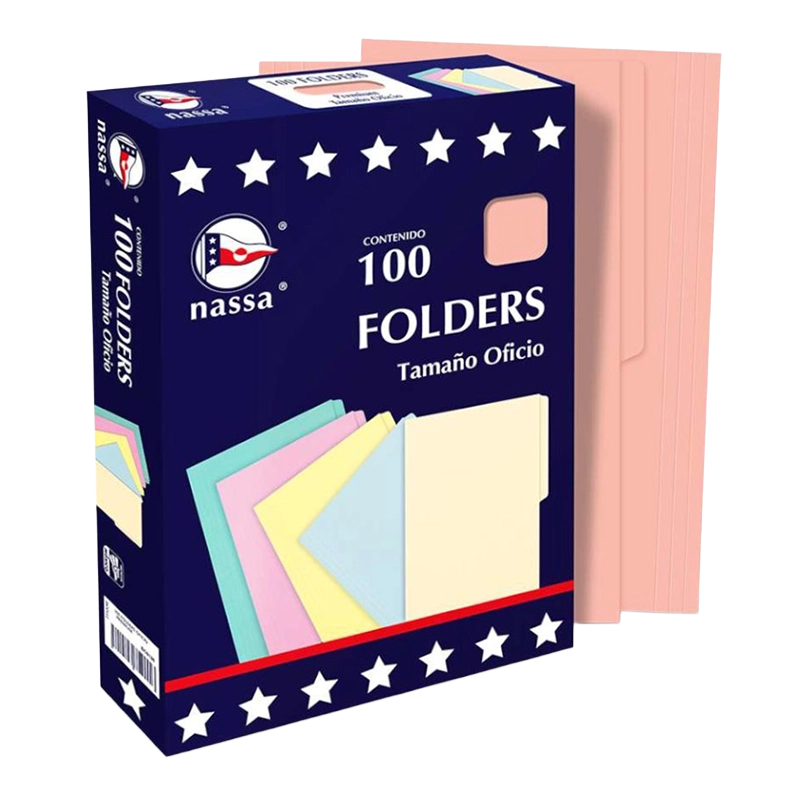 Pink letter size folders by NASSA offer durable, colorful filing for schools, offices, and homes—sold in a 100-pack for convenience and organization.