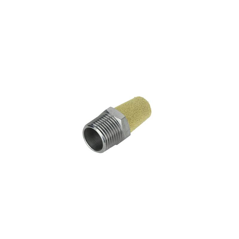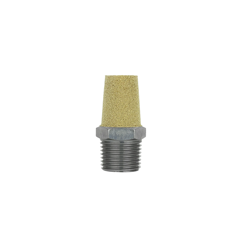 Porous sintered bronze filter (40 µm) lowers noise to OSHA‑acceptable levels