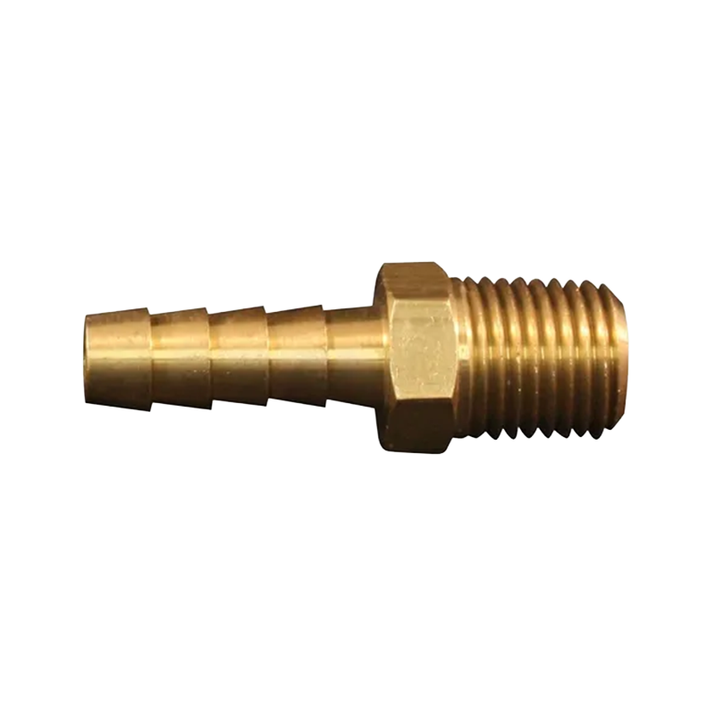 Constructed from durable brass, the Milton 1742‑6 features a 3/8″ NPT male thread that secures into fittings, tools, or manifolds, while the 3/8″ hose barb reliably grips the hose ID—engaging with the hose’s internal locking mechanism for a secure hold.