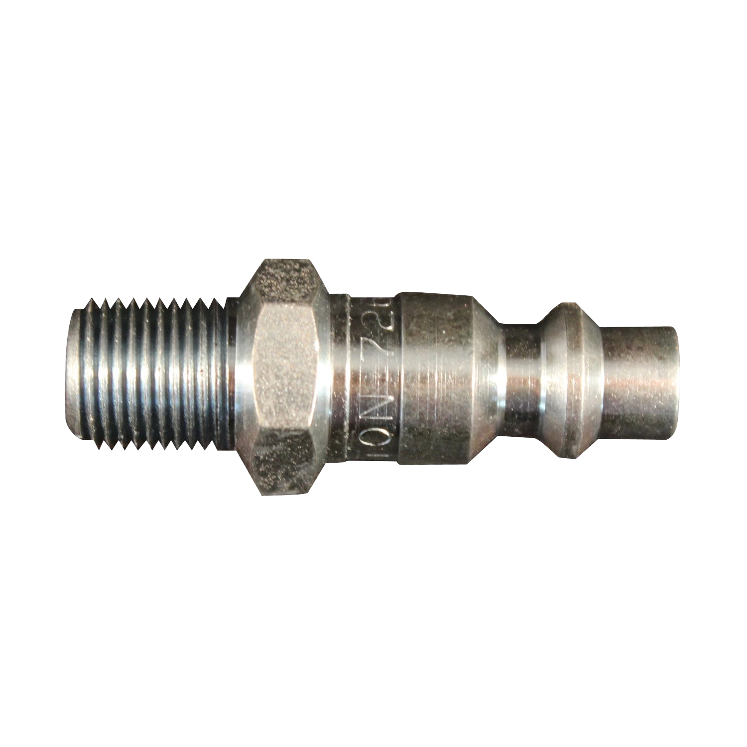 Milton male quick connector 726 features a 1/8″ NPT brass plug for rapid, leak-free air tool connections.