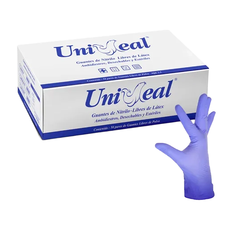 Extra Small Nitrile Gloves Powder-Free by UNIREAL provide snug, reliable protection. Each box contains 100 disposable gloves for medical or industrial use.