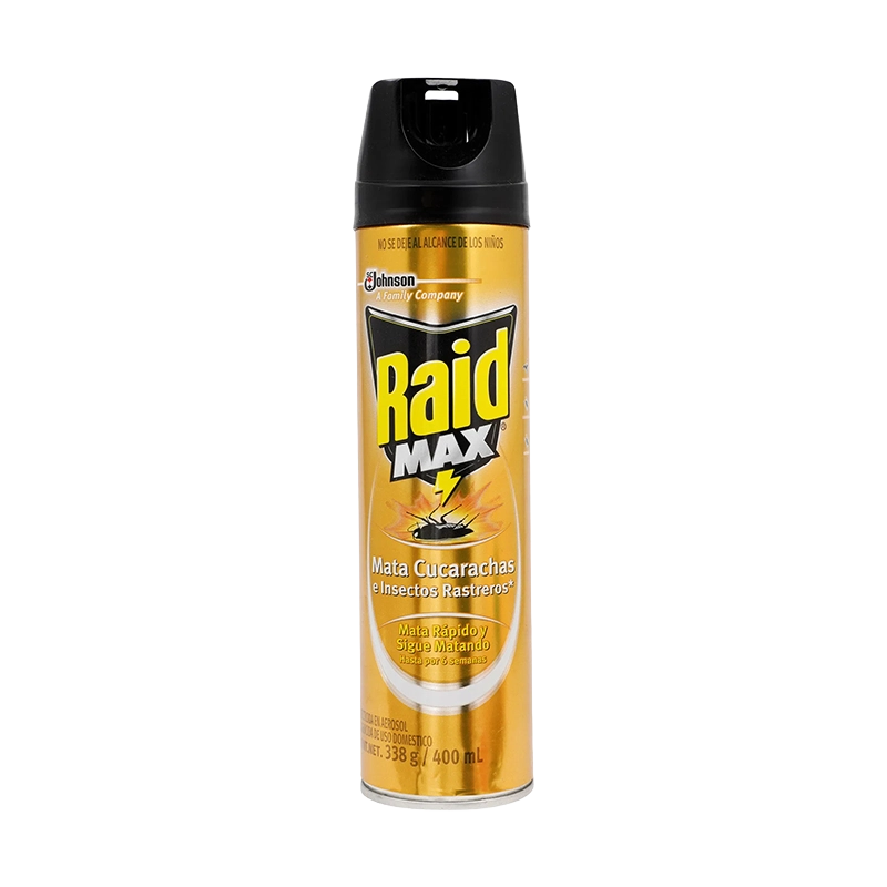 Raid Max insecticide spray offers high-performance pest control in a 400ml aerosol can. Eliminates insects fast and leaves a protective barrier.