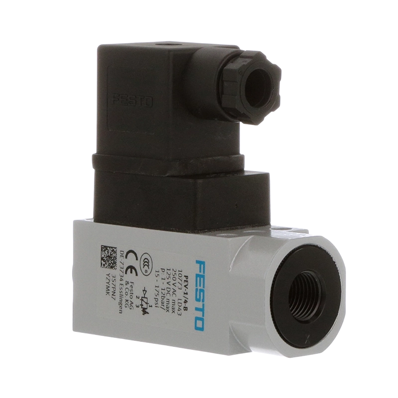 Pressure switch 1/4 inch FESTO PEV-1/4-B enables precise control and monitoring of pneumatic pressure in automation environments.