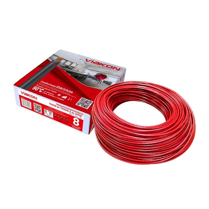 THHN THWN #8 red wire by Viakon, 100-meter box for reliable electrical performance in industrial and residential wiring.