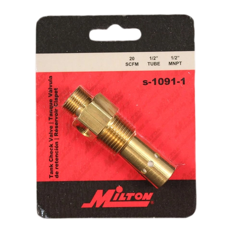 The check valve 1/2 inch MILTON 1091-1 is a high-performance brass one-way valve designed for use in pneumatic applications where backflow prevention is critical. With its compact form and robust construction, this valve helps maintain consistent airflow direction, improving the efficiency and safety of your air tools and compressors.